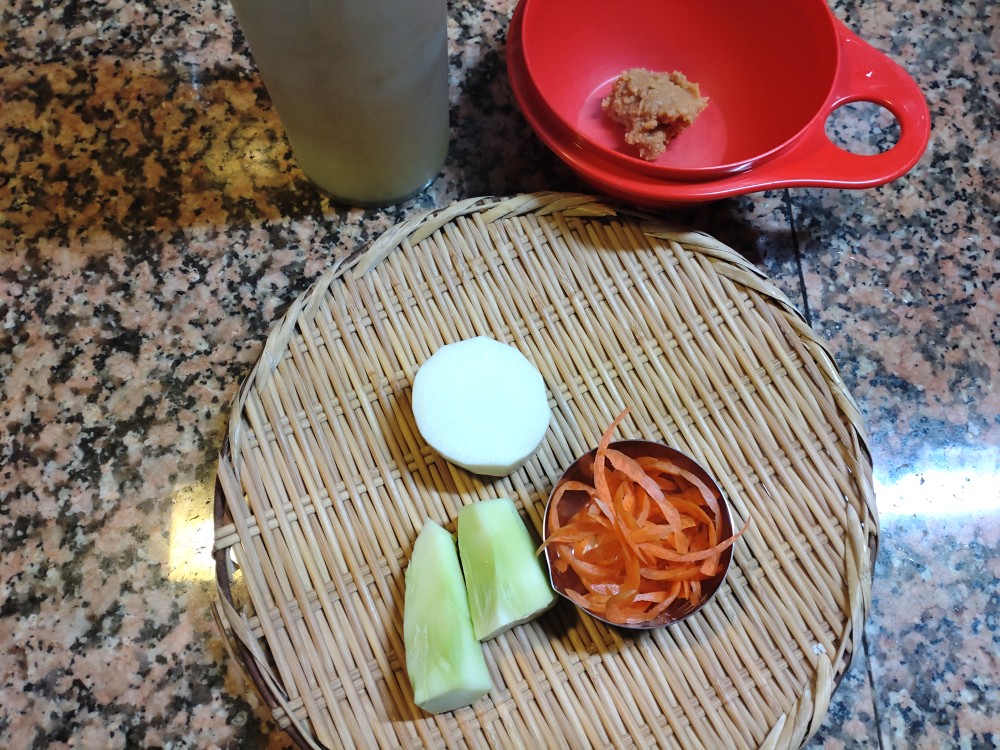 未精製の穀物を主食として、野菜や海藻や豆を汁や副菜とする一汁一菜の食事です。