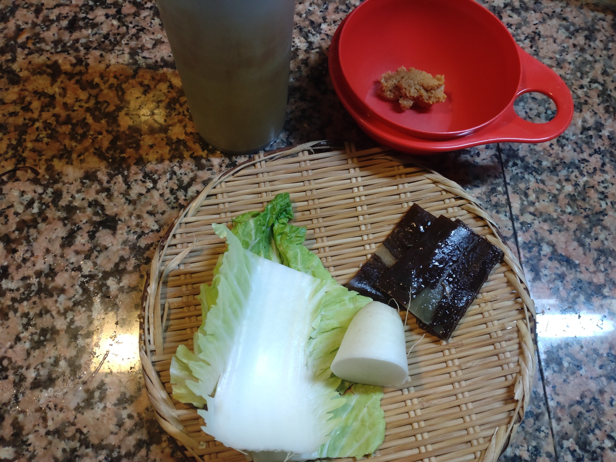 今朝は、白菜、大根、出汁をとったあとの羅臼昆布です。
