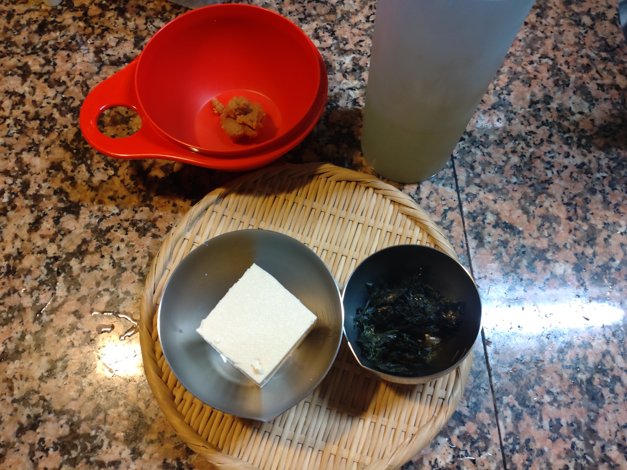 今朝は、木綿豆腐、海女のりの味噌汁です。