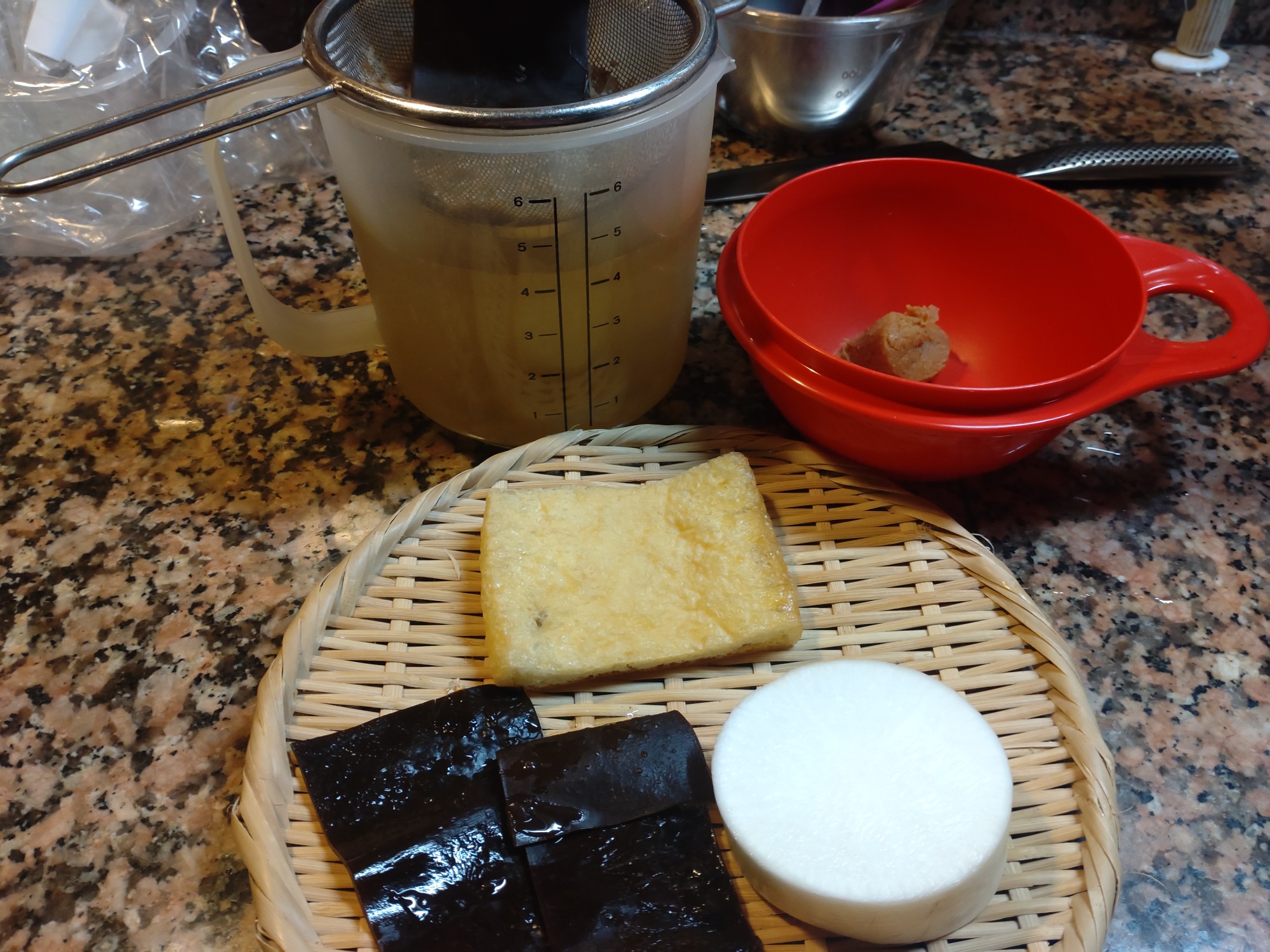 今朝は、大根、うすあげ、出汁をとった後の羅臼昆布の味噌汁です。