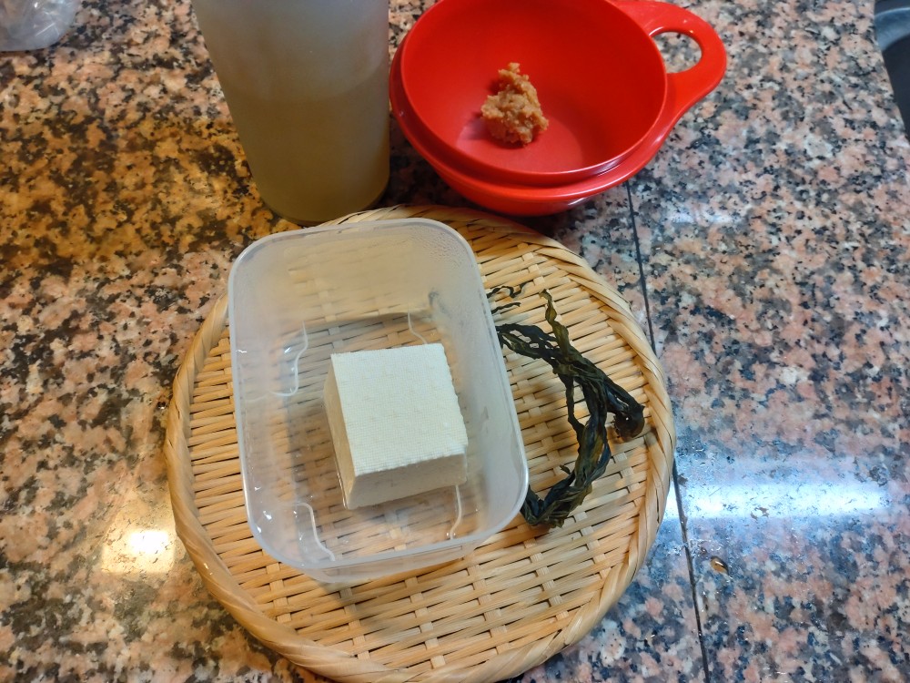 今朝は、木綿豆腐、わかめの味噌汁です。