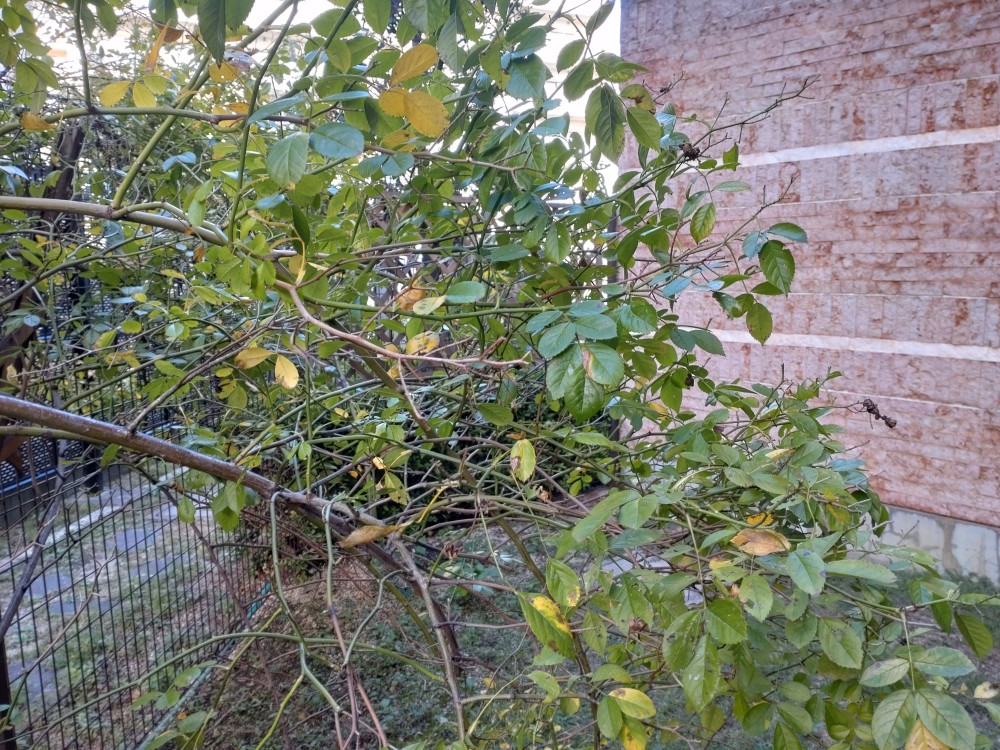 庭の薔薇の葉、緑色がだんだんと薄くなり落葉の頃。